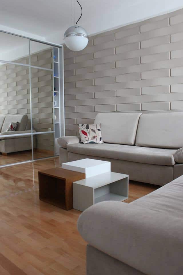Möglichkeiten für Verwendung: es ist empfehlenswert für fast alle Innenräume von Wohnungen, Büros, Restaurants, Hotels, Bars, Schönheitssalons, Kundenwartezimmern, Rezeption, Geschäftsräumen und allen Orten, wo anspruchsvolles Erscheinungsbild und Ästhetik im Vordergrund stehen. Da unsere 3D-Wandpaneele feuer-, wasser-fest und UV-geschützt sind, können sie auch im Außenbereich montiert werden, oder in Umgebungen, die stärkeren Einflüssen ausgesetzt sind (z. B. Küche, Badezimmer).