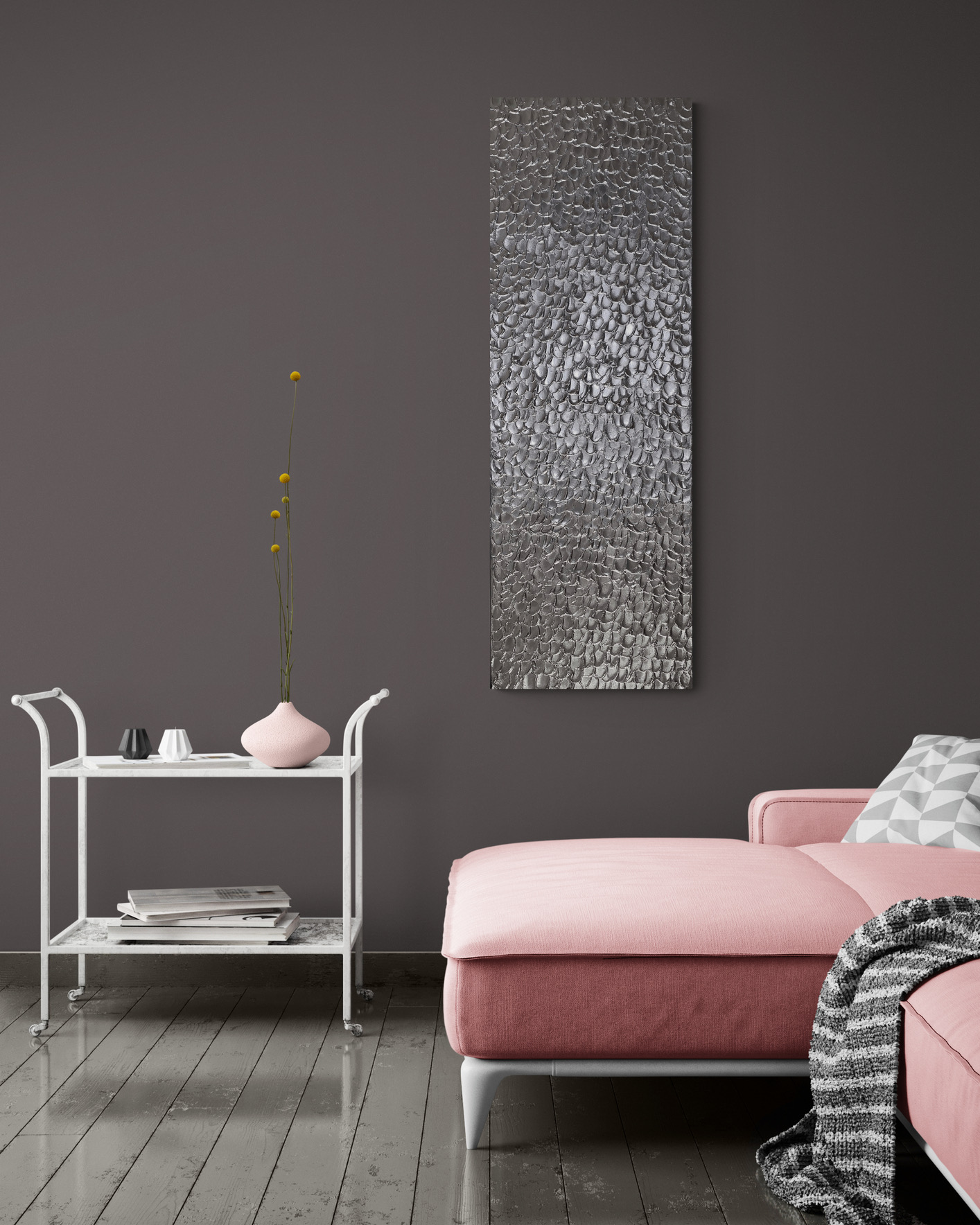 Entdecken Sie jetzt unsere neuen Leinwandbilder mit einer texturierten Schuppenoberfläche, die in den Farben Chromsilber und Mattschwarz erhältlich sind! Diese einzigartigen Kunstwerke werden garantiert zum Blickfang in Ihrem Zuhause oder Büro. Die Schuppenstruktur verleiht dem Bild eine besondere Tiefe und Dynamik, während die glänzenden und matten Oberflächen einen modernen und eleganten Look schaffen.