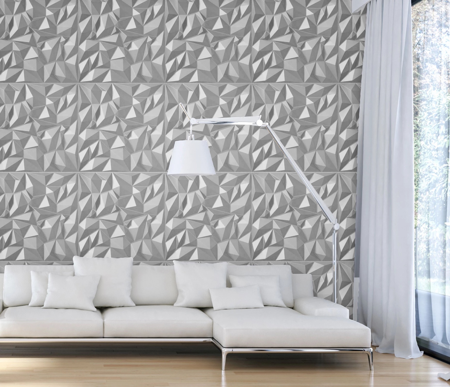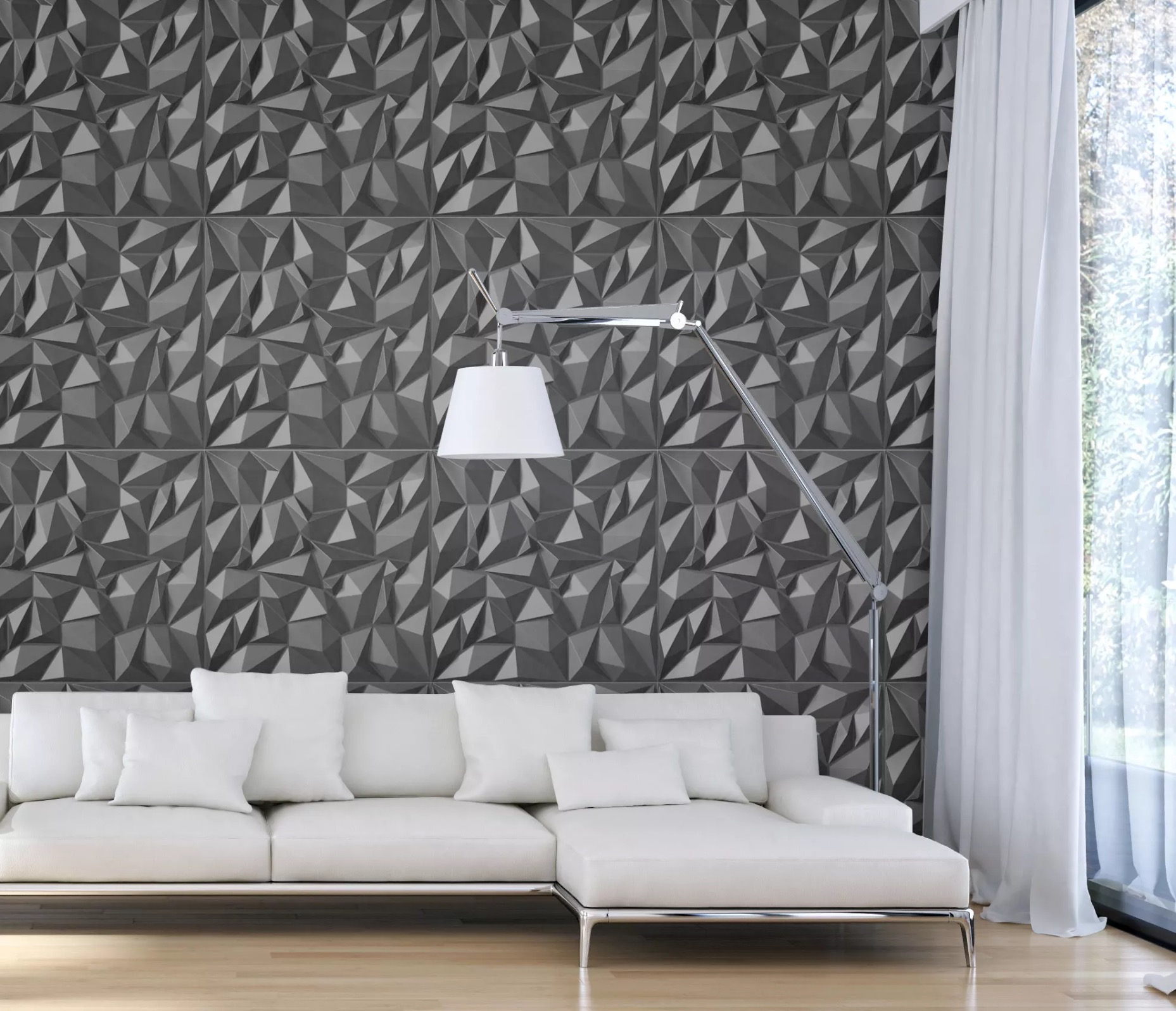 Möglichkeiten für Verwendung: es ist empfehlenswert für fast alle Innenräume von Wohnungen, Büros, Restaurants, Hotels, Bars, Schönheitssalons, Kundenwartezimmern, Rezeption, Geschäftsräumen und allen Orten, wo anspruchsvolles Erscheinungsbild und Ästhetik im Vordergrund stehen. Da unsere 3D-Wandpaneele feuer-, wasser-fest und UV-geschützt sind, können sie auch im Außenbereich montiert werden, oder in Umgebungen, die stärkeren Einflüssen ausgesetzt sind (z. B. Küche, Badezimmer).3D Wandpaneel PVC (ABS) ist eine gute Wahl, denn