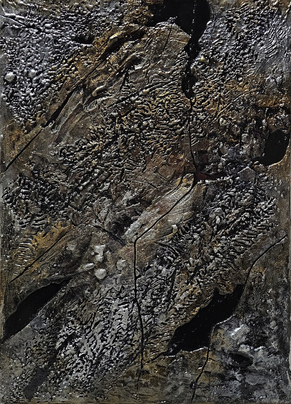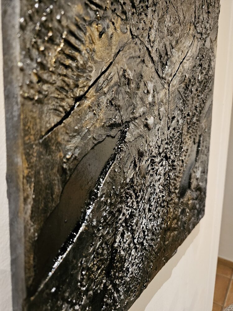 SOLD Original „Scura Eclissi di Bronzo“ Modern Gipsbilder Stein Abstrakt Natur Wanddekoration SteinOptik 50x70cm
