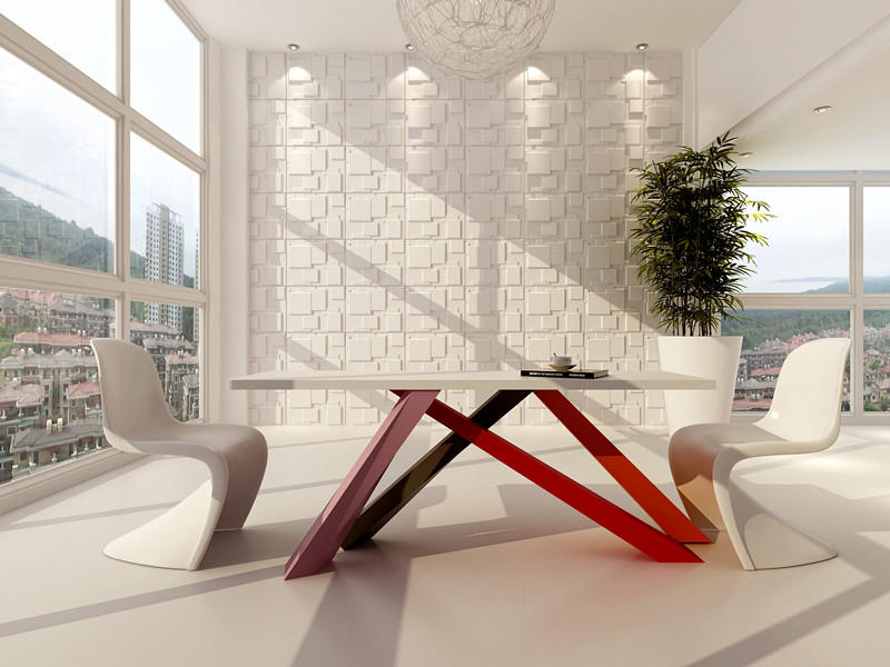 Möglichkeiten für Verwendung: es ist empfehlenswert für fast alle Innenräume von Wohnungen, Büros, Restaurants, Hotels, Bars, Schönheitssalons, Kundenwartezimmern, Rezeption, Geschäftsräumen und allen Orten, wo anspruchsvolles Erscheinungsbild und Ästhetik im Vordergrund stehen. Da unsere 3D-Wandpaneele feuer-, wasser-fest und UV-geschützt sind, können sie auch im Außenbereich montiert werden, oder in Umgebungen, die stärkeren Einflüssen ausgesetzt sind (z. B. Küche, Badezimmer).