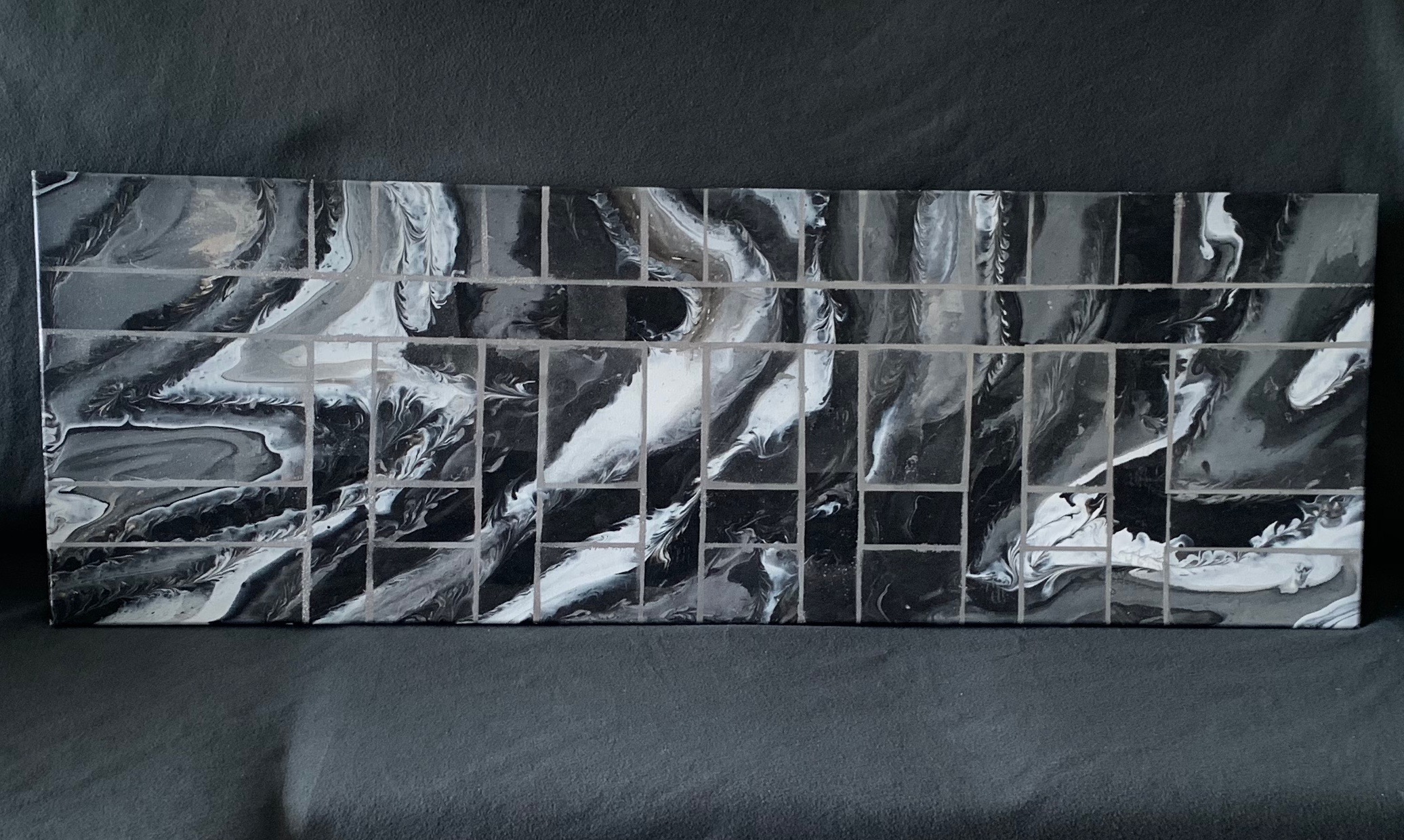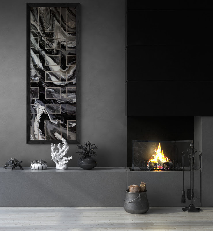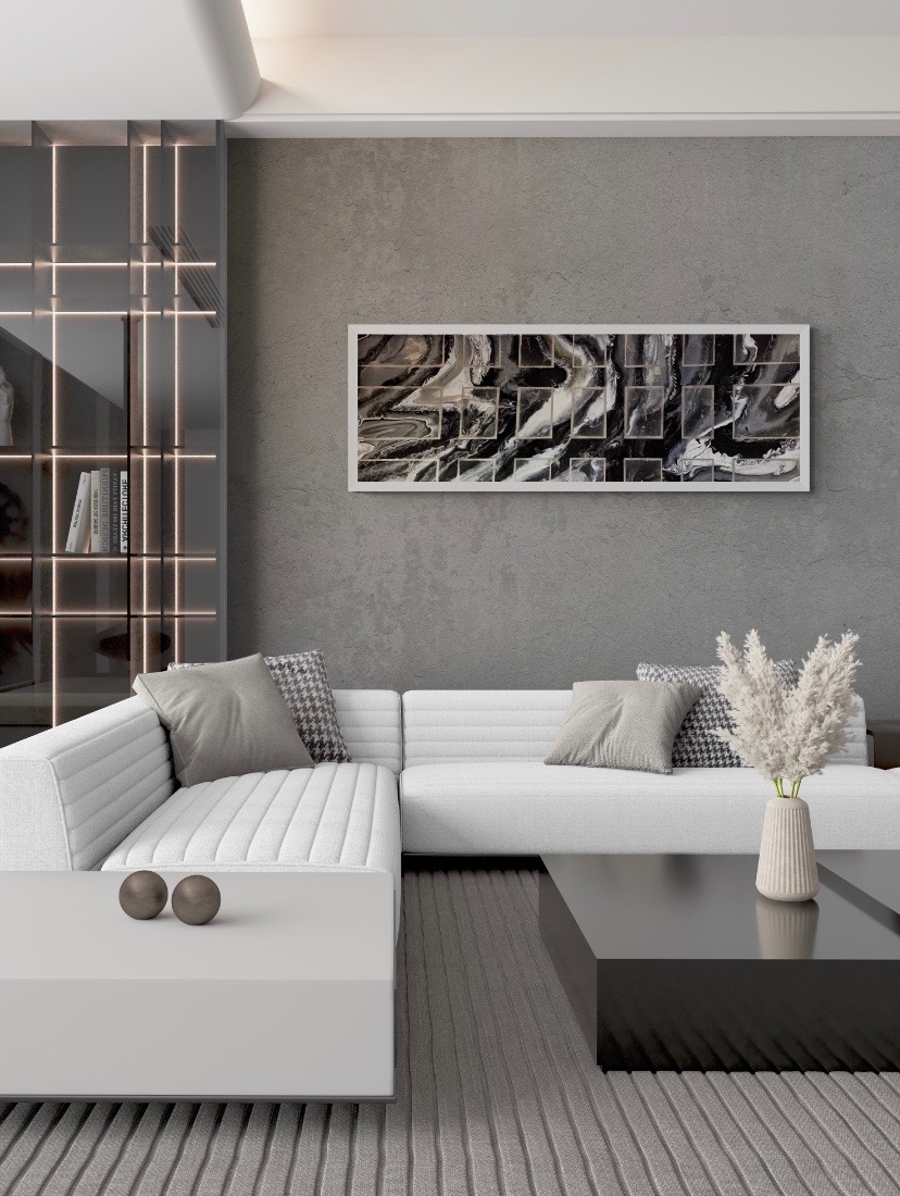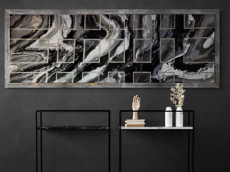 Moderne Bilddekoration im minimalistischen Stil mit Metallic-Geometrie-Effekt und Verwendung von Lackfarben.