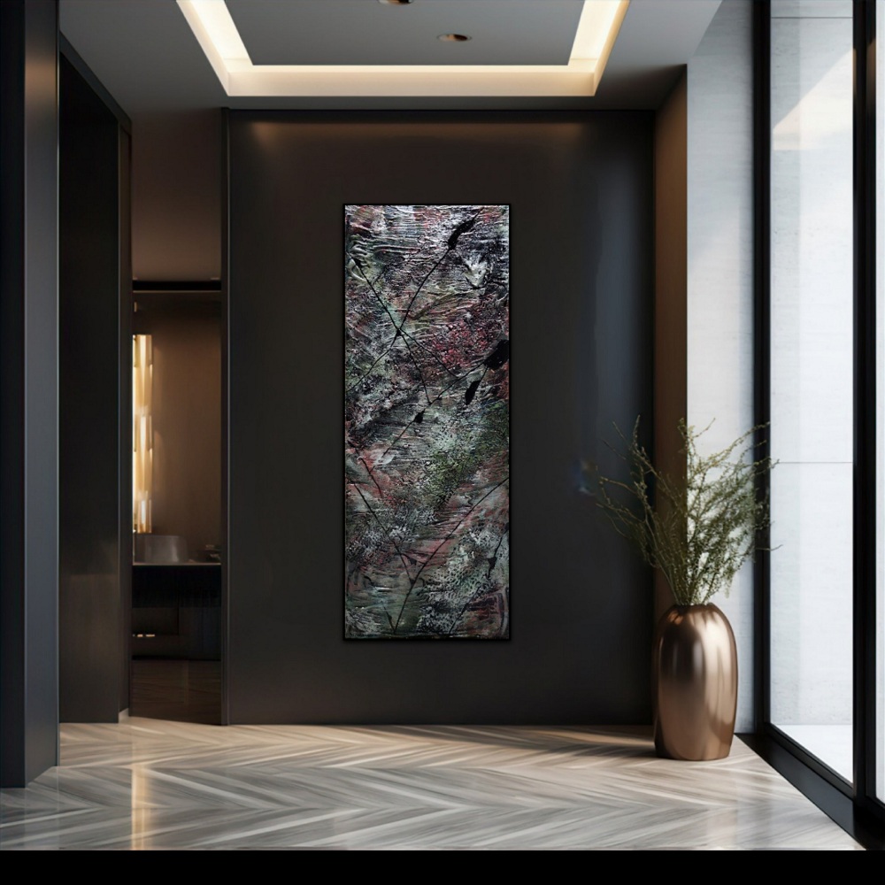 Unsere Wanddeko, individuell gestaltet und von Hand gefertigt, präsentiert sich in einer atemberaubenden Steinoptik. Die 3D-Textur wird durch raffinierte Handwerkskunst erreicht, und die metallischen Farben entfalten ihre volle Pracht bei Lichteinfall.